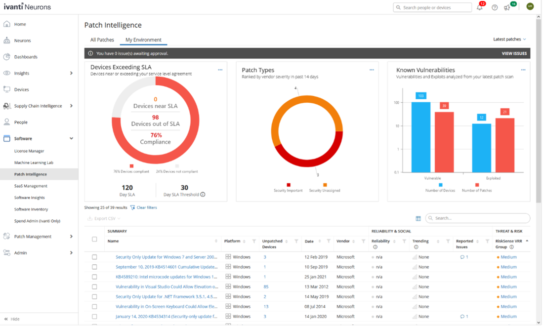The Connect App for Ivanti EPM® allows Forescout eyeSight to connect to and collect compliance status on endpoints managed by Ivanti IPM.