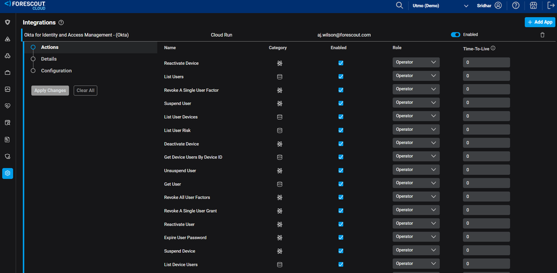 Integrating Forescout® eyeAlert with Okta for Identity and Access Management enhances the speed and efficiency of incident response dealing with identity related detections. This combination allows for automatic actions in response to threats, such as retrieving detailed information on affected users, devices or isolating them to prevent the spread of potential or verified threats. These actions can be initiated directly from the incident’s detailed view, streamlining the process by eliminating the need to navigate through multiple systems for incident management.